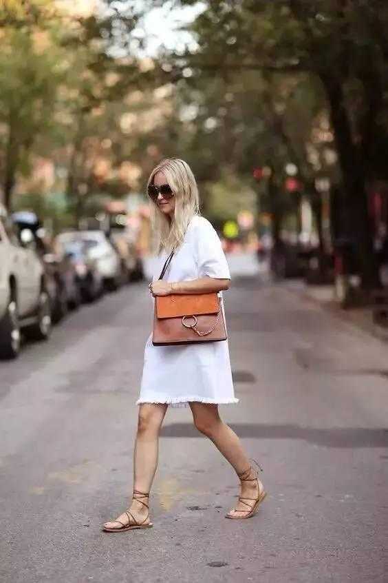 腰粗穿半身裙会勒出小肚子,穿无腰线的宽松A字连衣裙,就是最好的选择,显瘦无敌哦~选一双到脚踝的绑带凉鞋,搭配同色系的包包一切都刚刚好